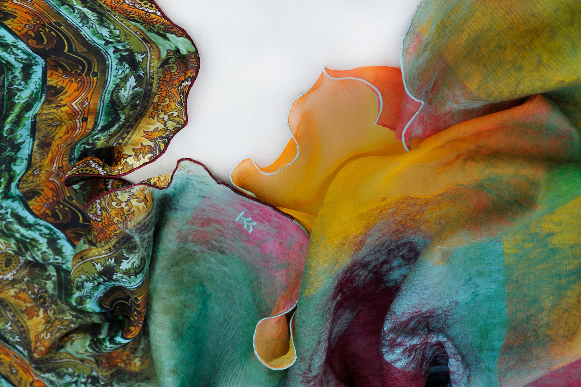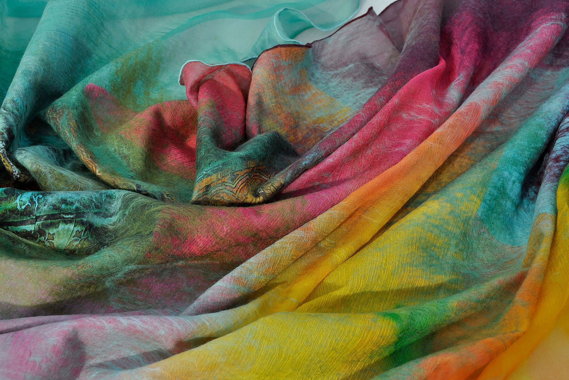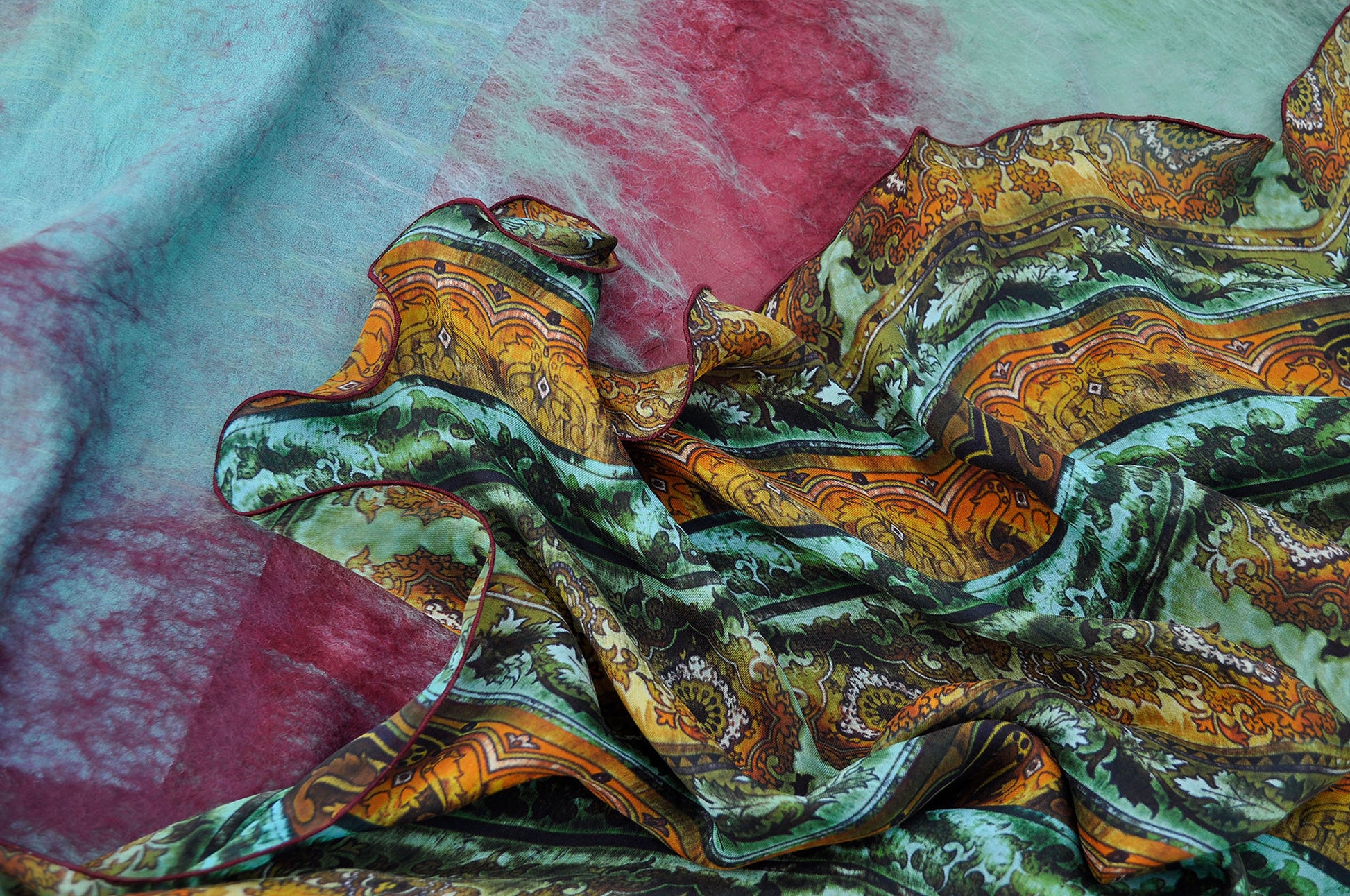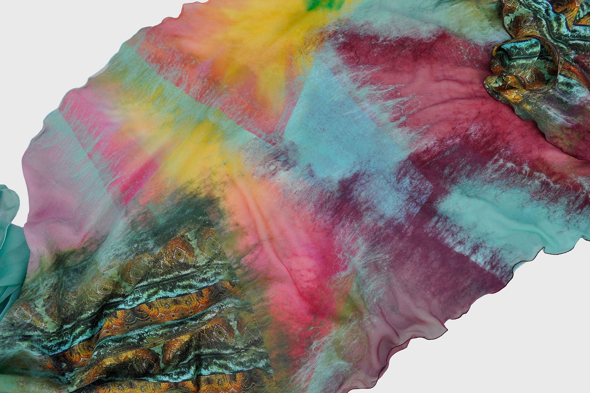 The shawl is made from the finest natural Italian silk and delicate merino wool 16 micron.