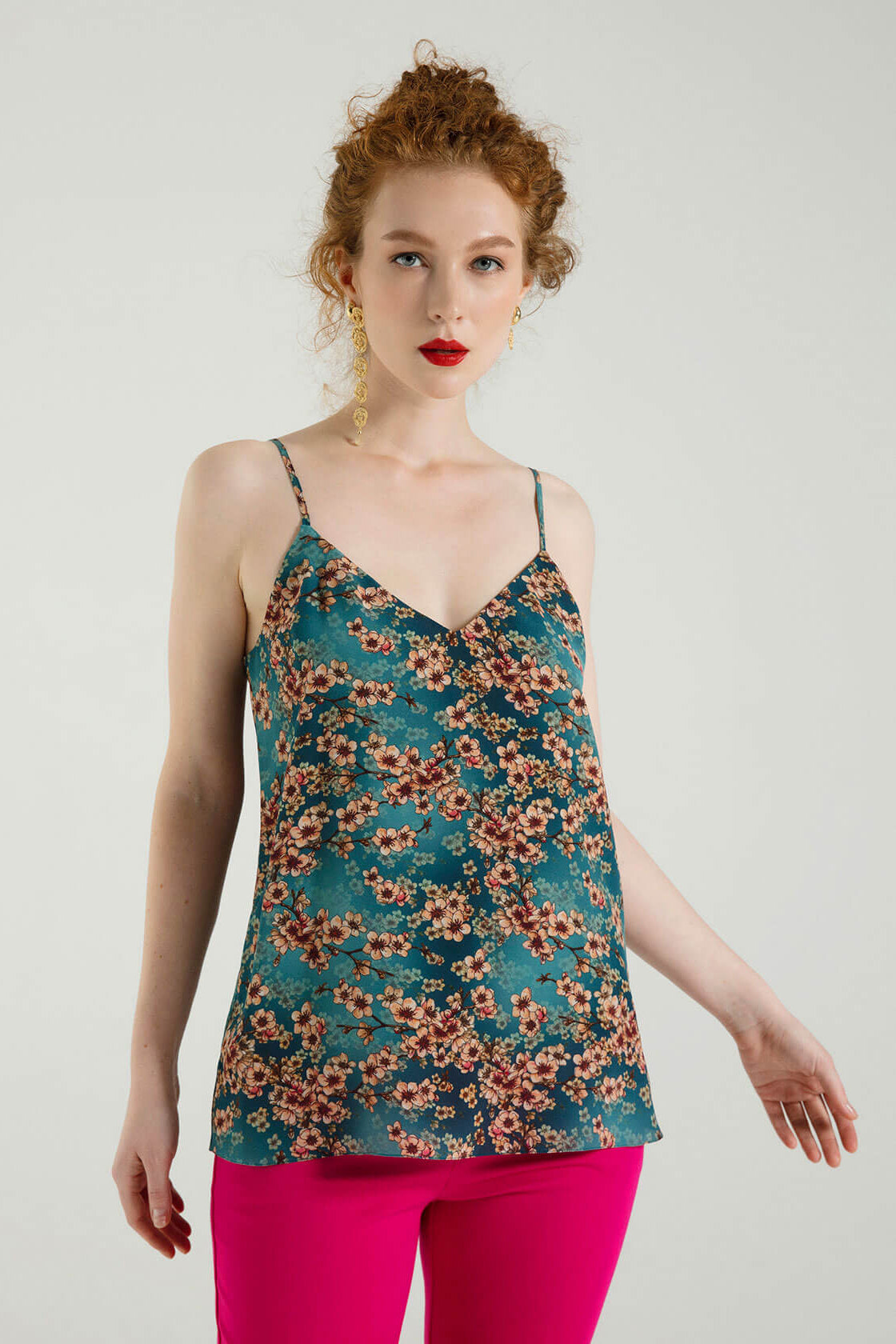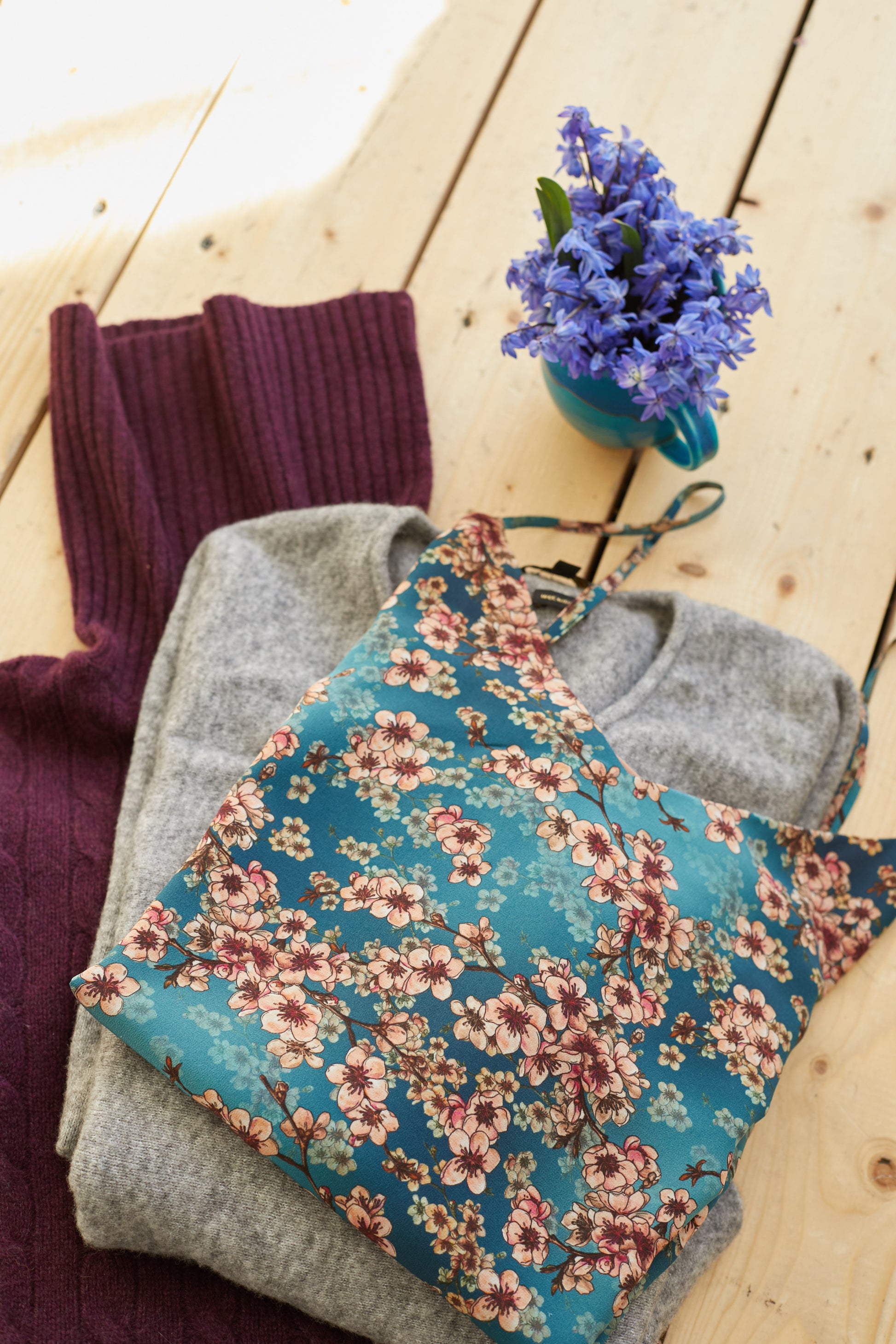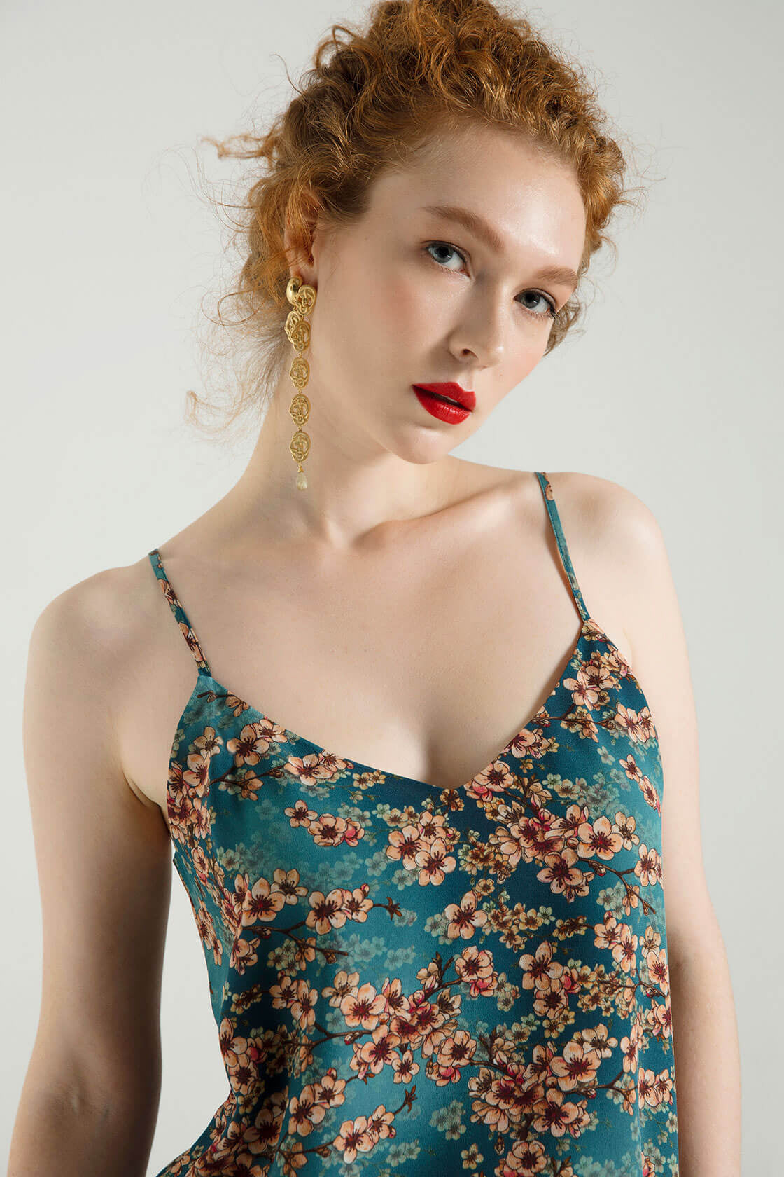 Top Sakura is our hit. The sea-green silk background and delicate cherry blossoms make this model one of the most popular. Women in the USA, Austria, Germany, Great Britain, and Russia already wear this top.