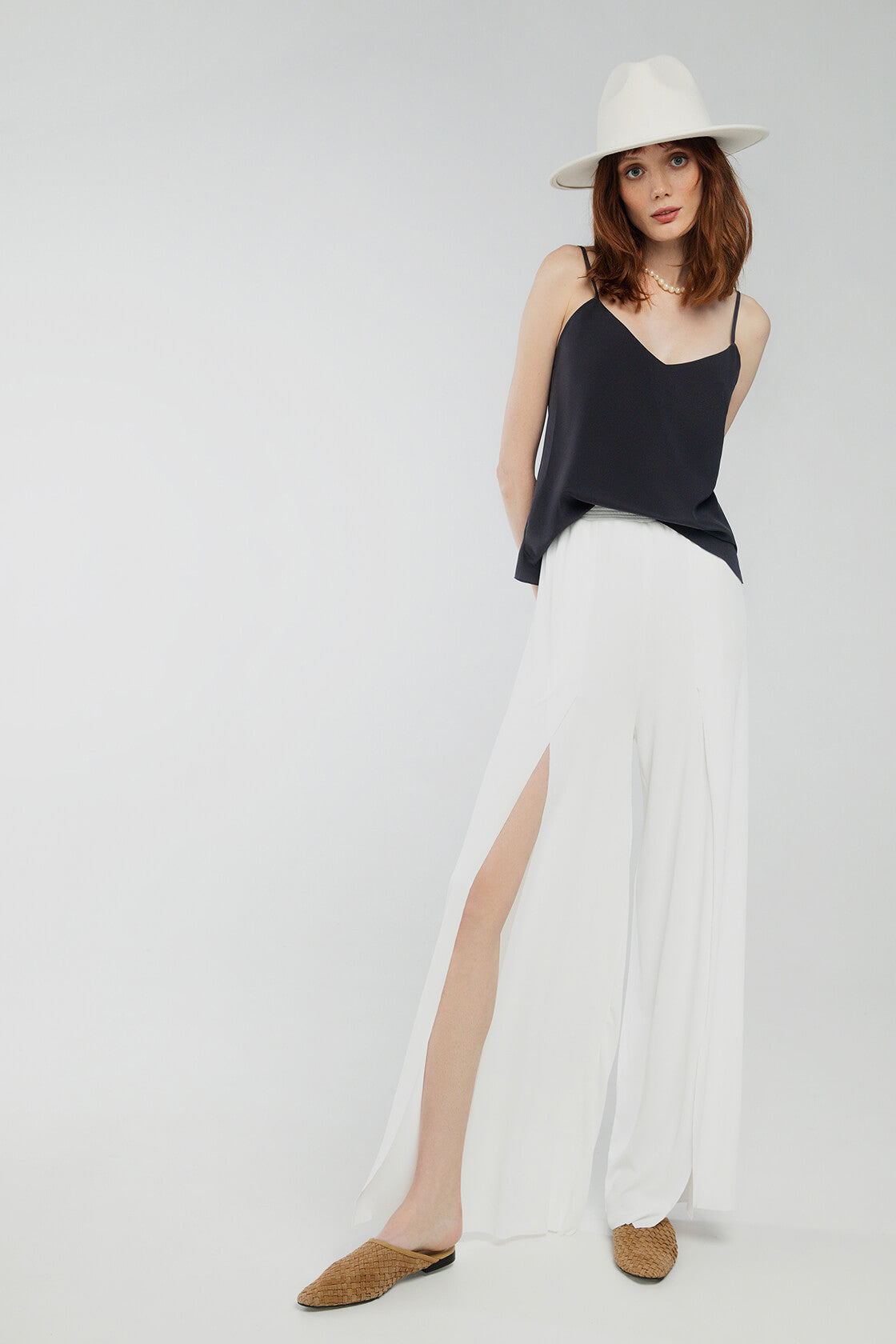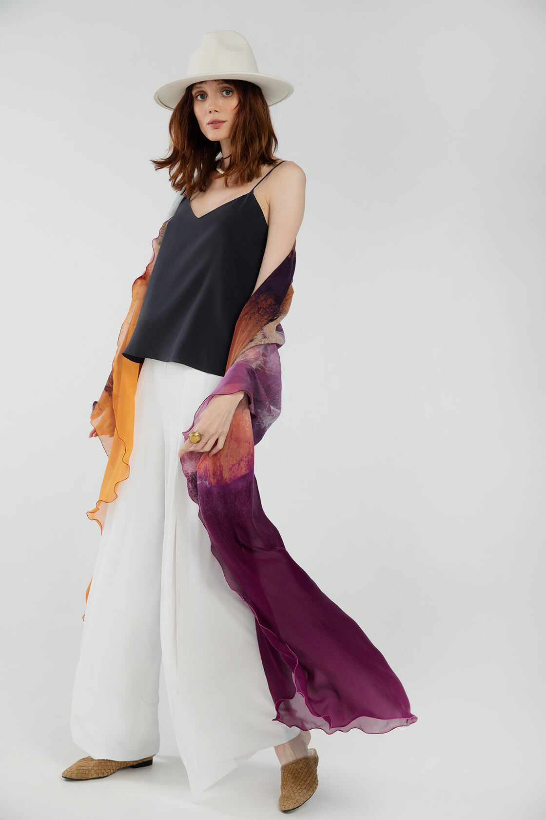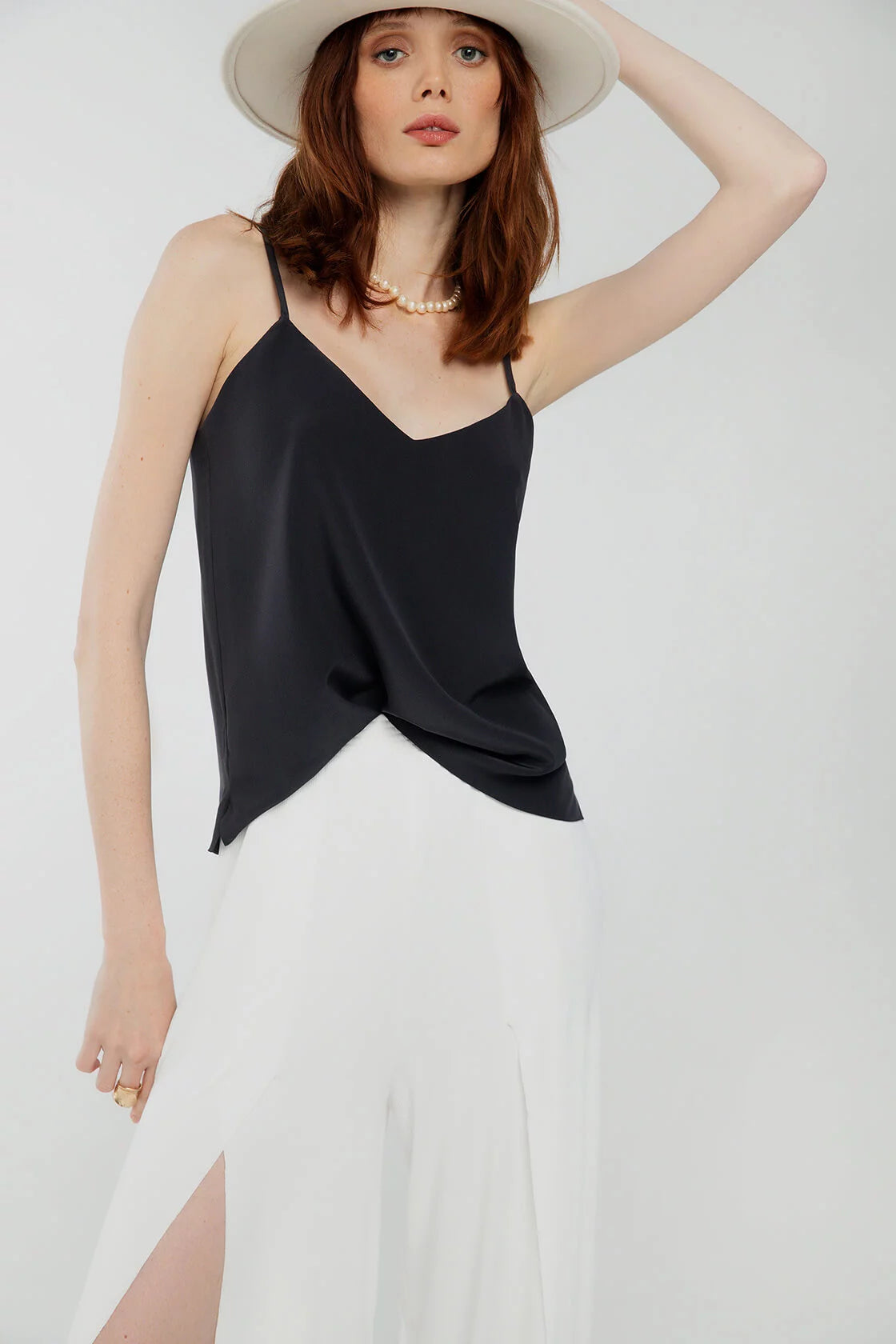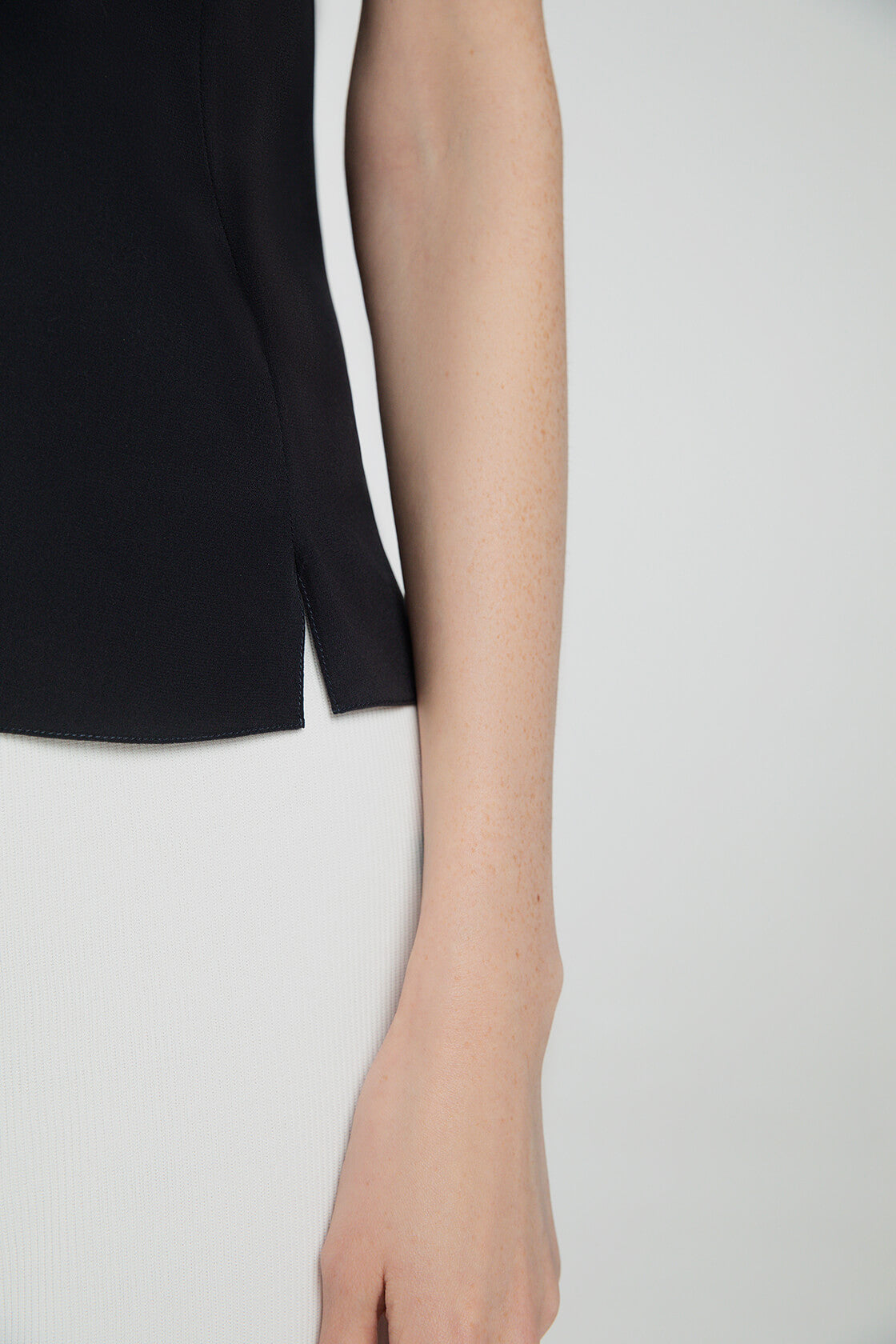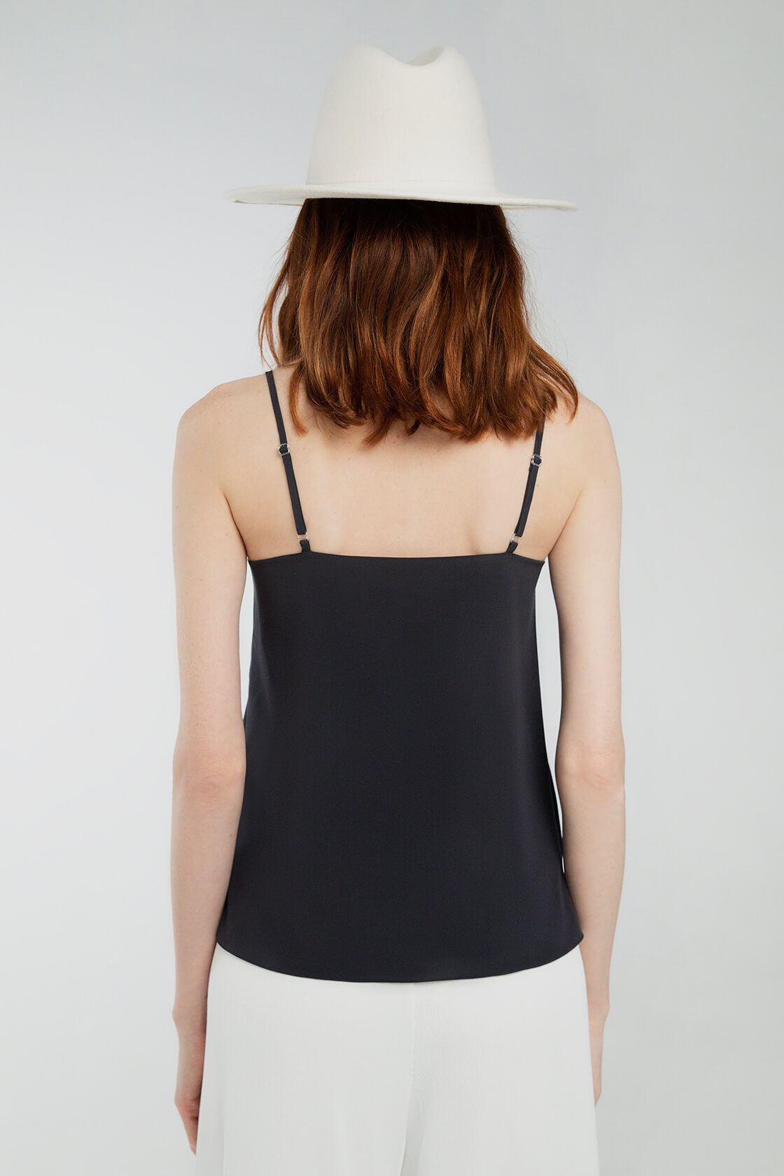 The top is two-layer - the lining is made of the same Italian crepe silk as the top of the product, so it won't show through.