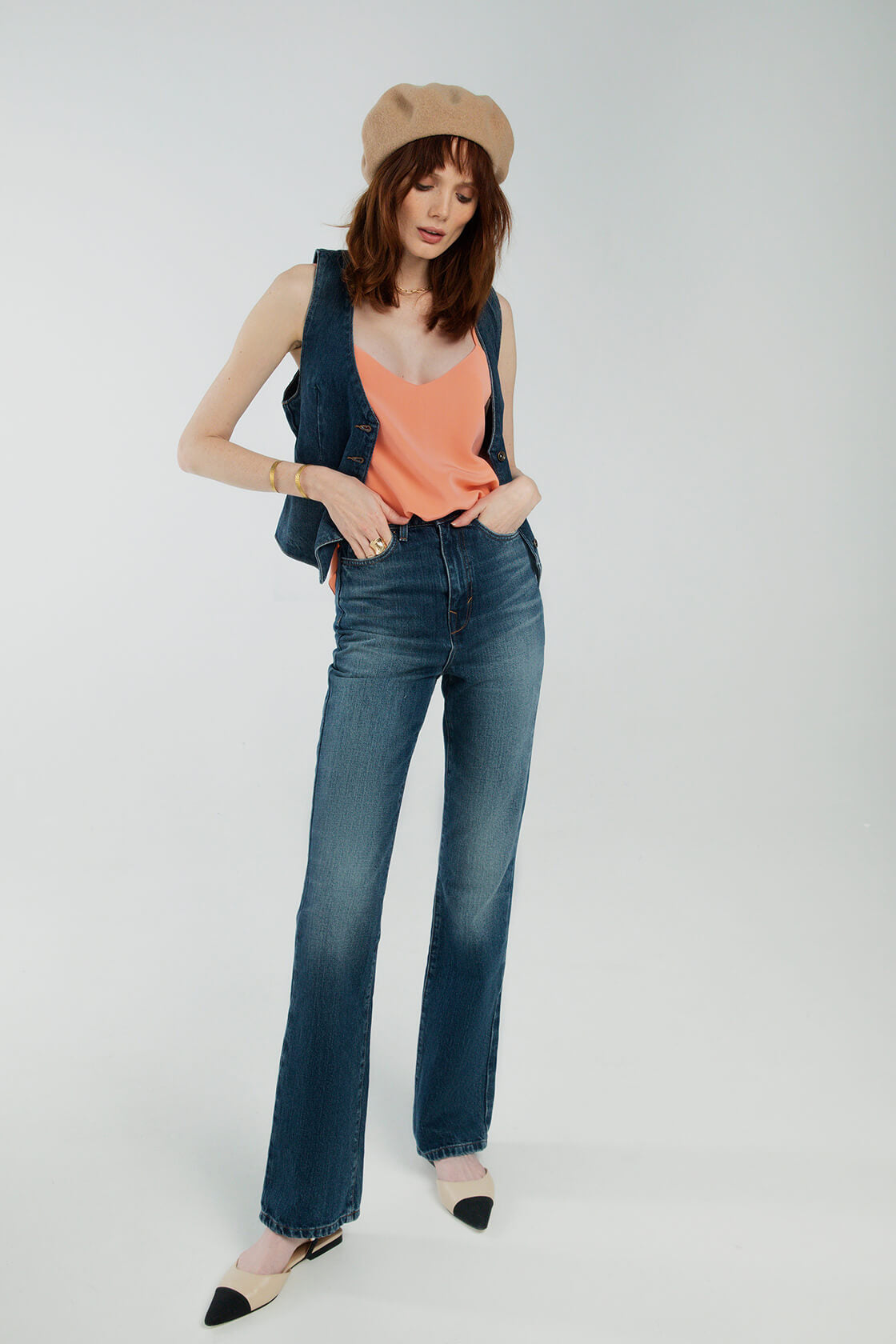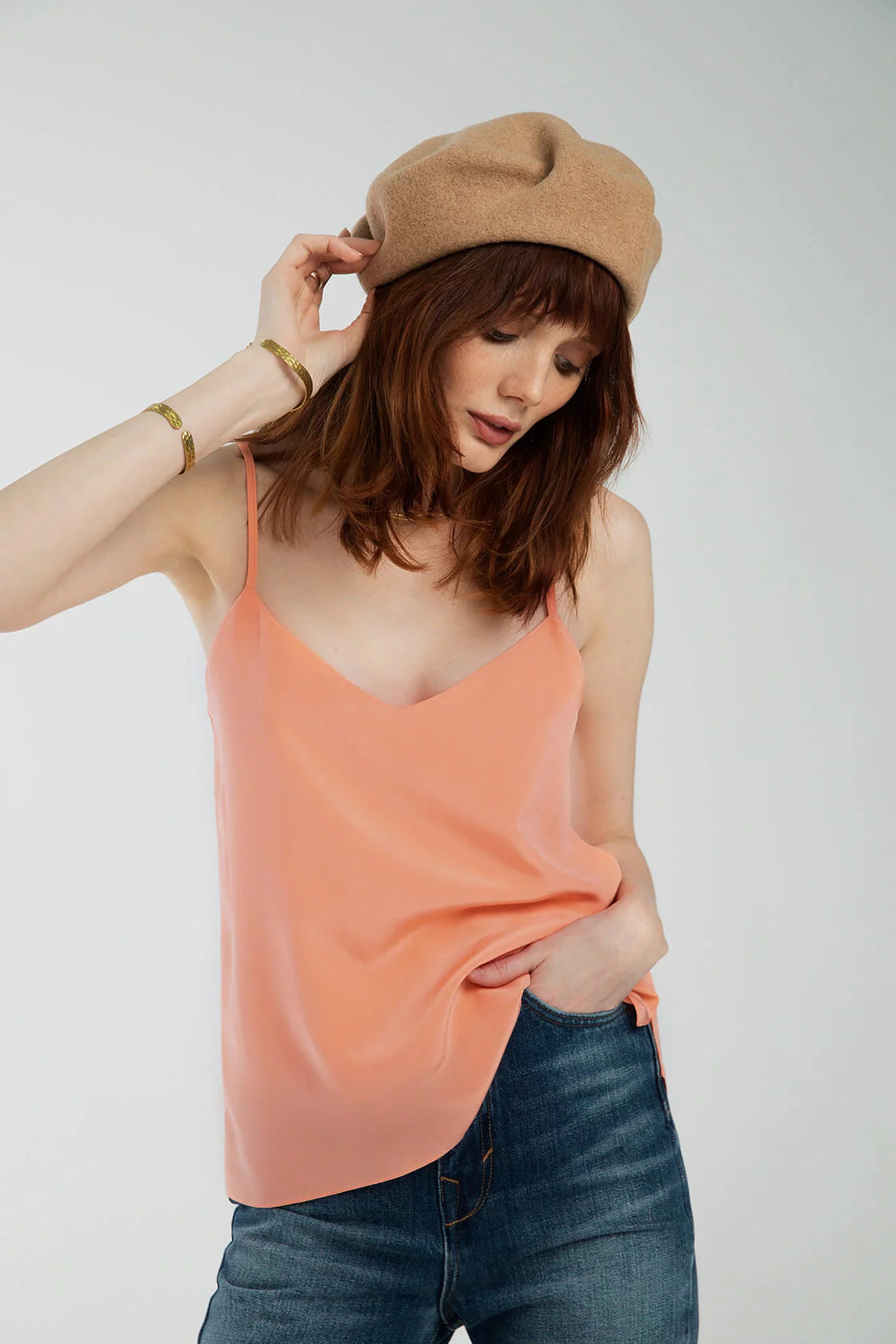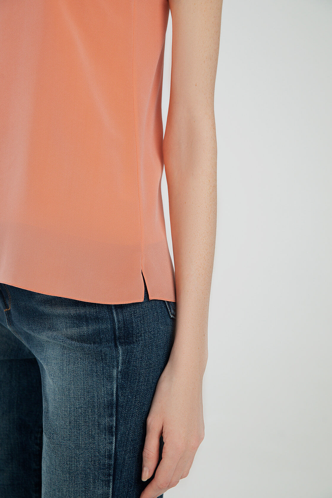 An Italian silk top in a gorgeous light coral color. A must-have for vacations and dates!