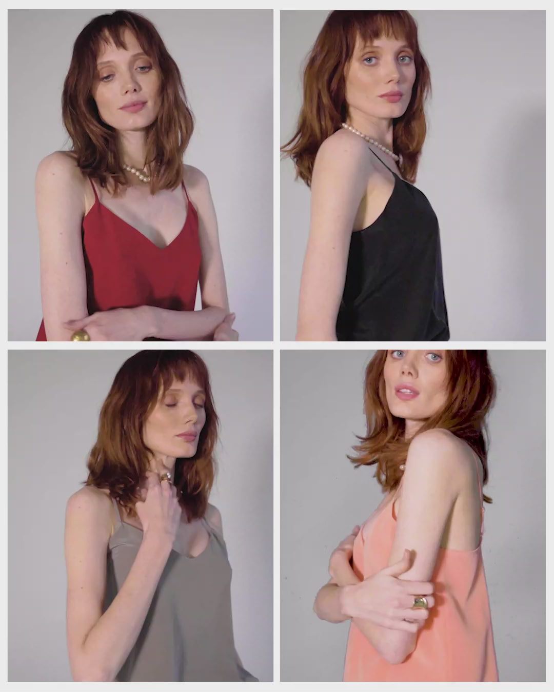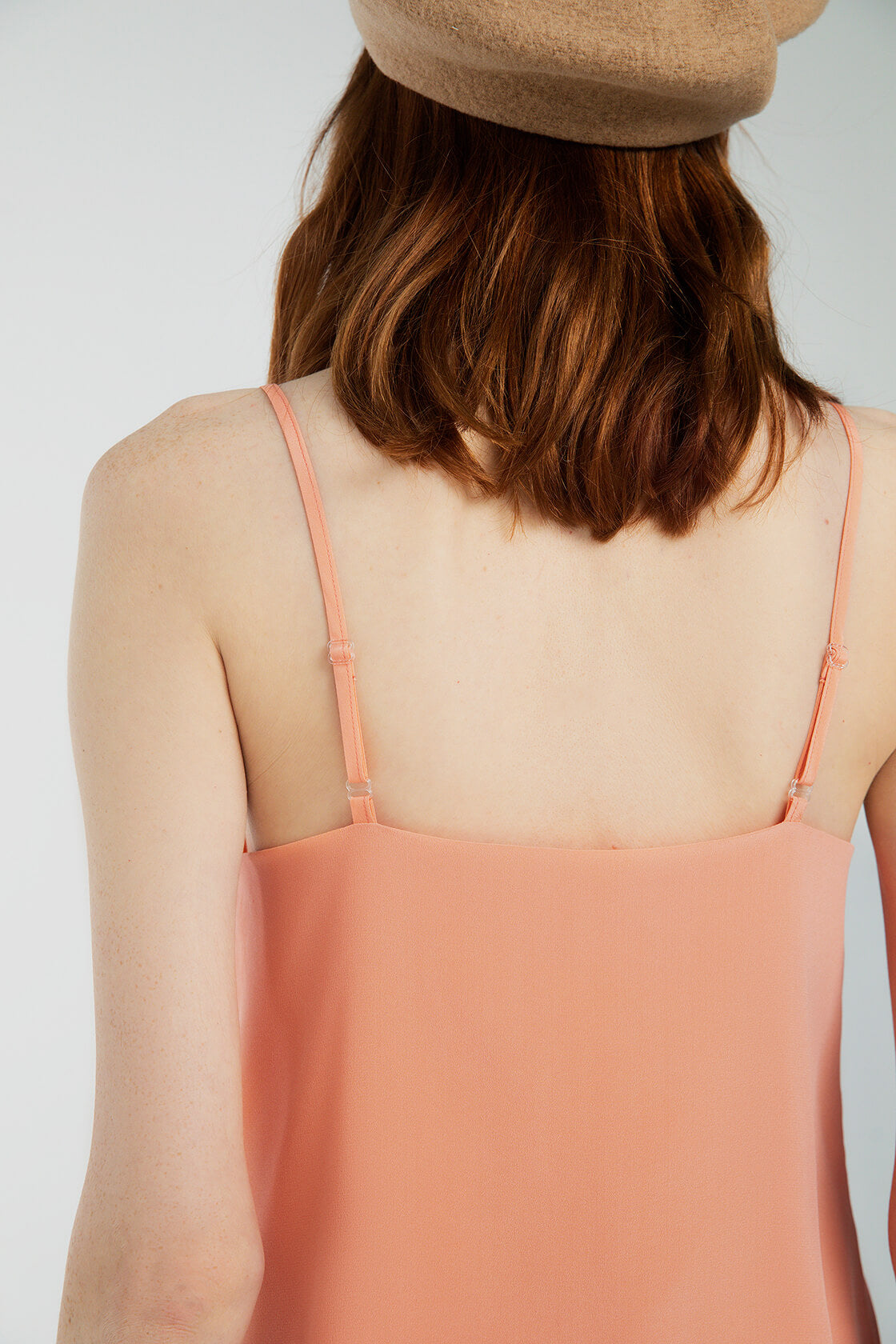 The top is two-layer - the lining is made of the same Italian crepe silk as the top of the product, so it won't show through.