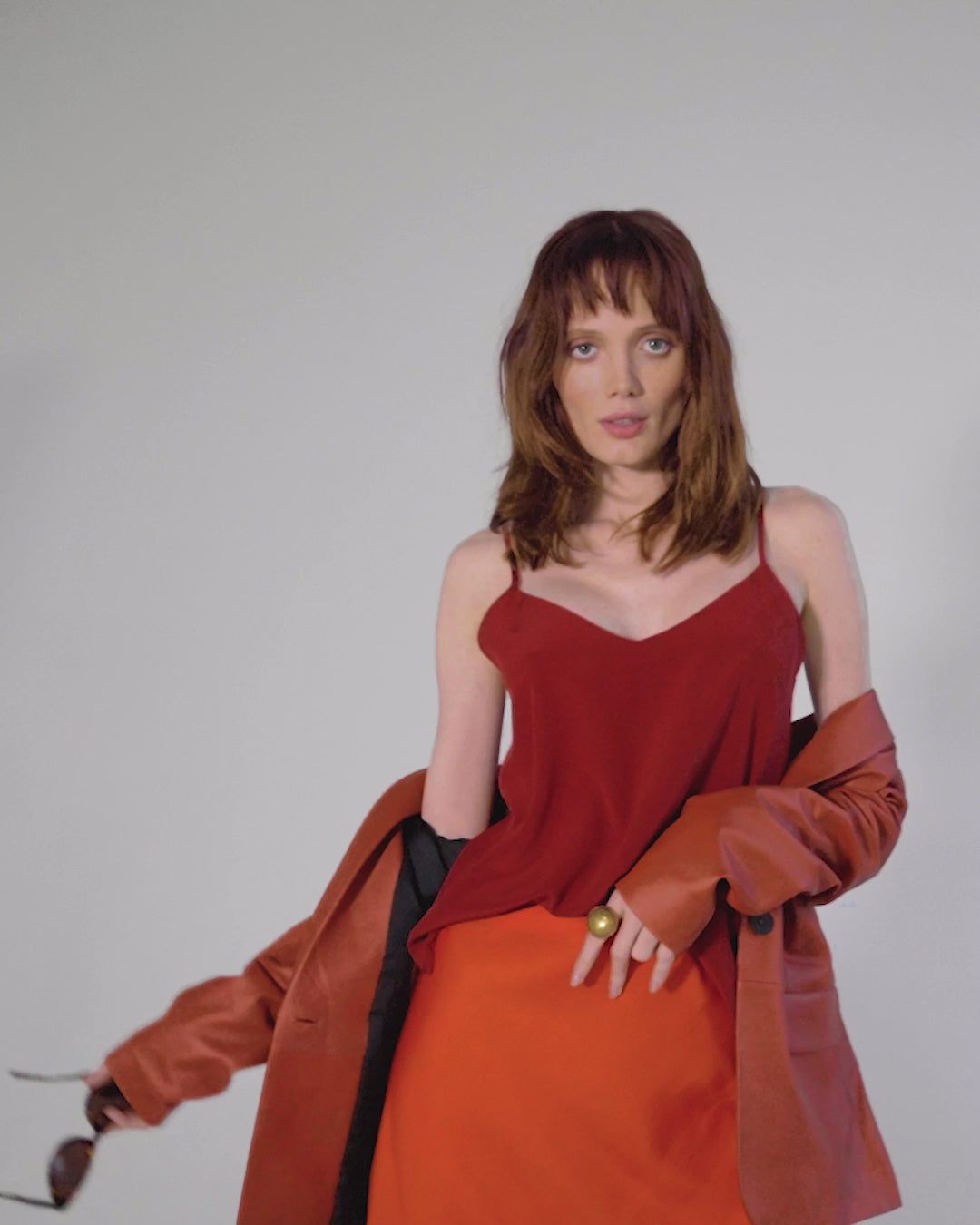 The top is two-layer - the lining is made of the same Italian crepe silk as the top of the product, so it won't show through.
