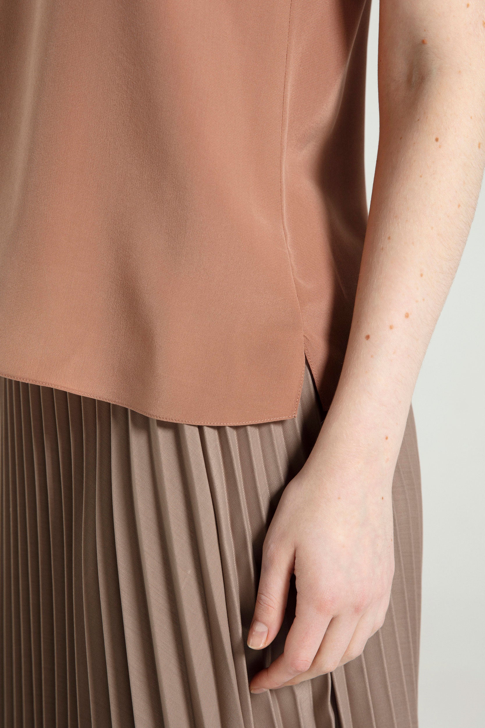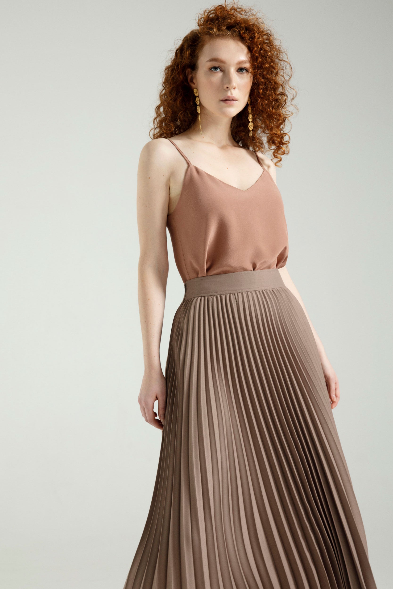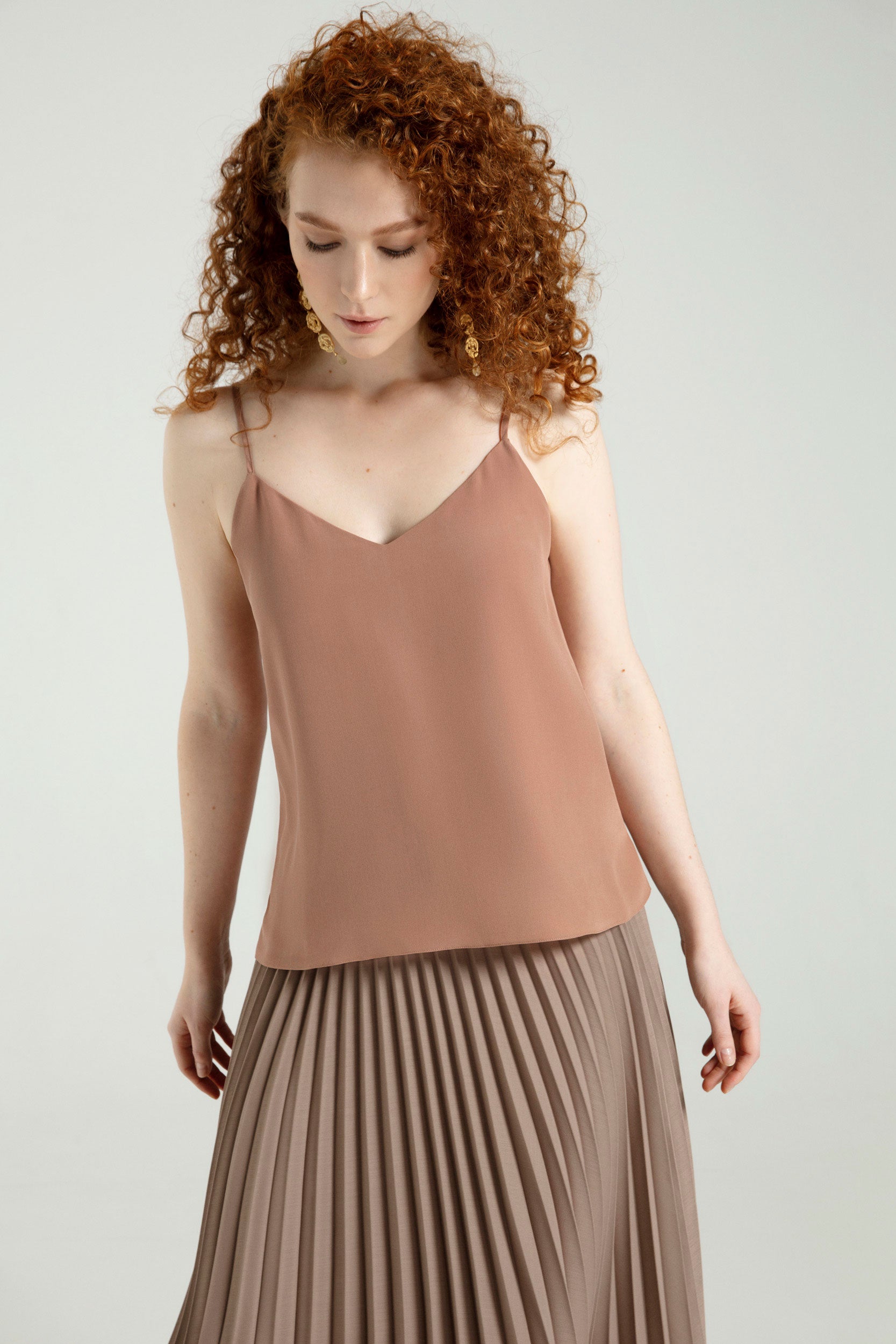 The top is two-layer - the lining is made of the same Italian crepe silk as the top of the product, so it won't show through.
